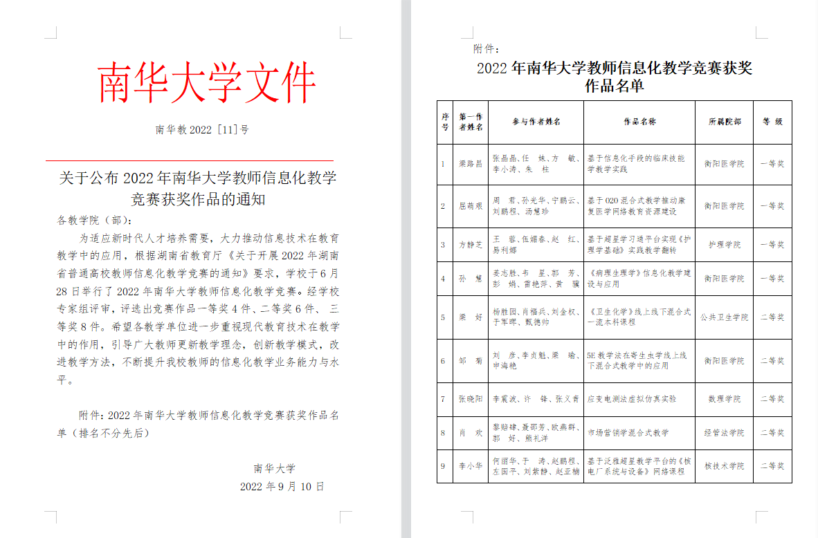 本次教师信息化教学竞赛共评选出竞赛作品一等奖4件、二等奖6件、 三等奖8件。该奖项的获得,充分反映护理学院高度重视现代教育技术在教学中的作用,积极引导广大教师更新教学理念,创新教学模式,改进教学方法,不断提升青年教师的教学业务能力与水平。
